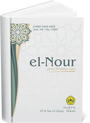 el-Nour: Jurnal Pendidikan Islam is an international peer-reviewed journal published by Program Studi Pendidikan Agama Islam (PAI) Sekolah Tinggi Agama Islam (STAI) Nur El-Ghazy Bekasi, Indonesia. The journal has been established since 2024. It publishes scholarly research on Islamic educational institutions and Islamic education. The articles of this journal are published bi-annually: June and December. el-Nour: Jurnal Pendidikan Islam is the leading journal in Islamic educational institutions concerning Islamic education. The journal promotes research and scholarly discussion concerning Islamic Education in Academic disciplines and Institutions, focusing on the advancement of scholarship both formal and non-formal education. Topics might be about Islamic educational studies in madrasah (Islamic schools), pesantren (Islamic boarding school), and Islamic education in university.